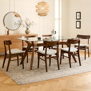 Emmer 71" Glass Dining Table - Walnut