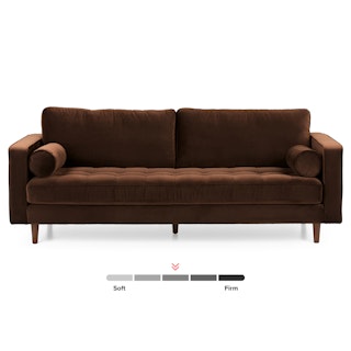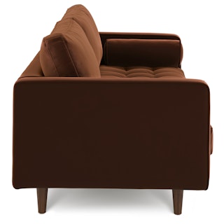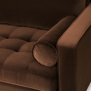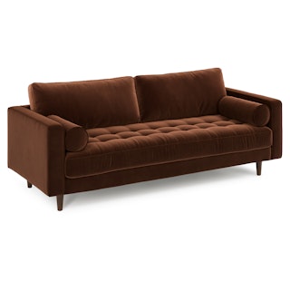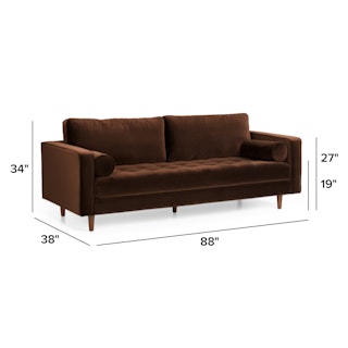 Maximum mid-century appeal. With its plush back cushions, bolsters made for regal lounging, and tufted bench seat, this velvet version of our Sven Sofa puts your calm, cool, creative style on display. This piece is poised on a wooden block frame and upholstered in soft brushed velvet. Pair this piece with a good book: the perfect combo for unwinding after a long day.