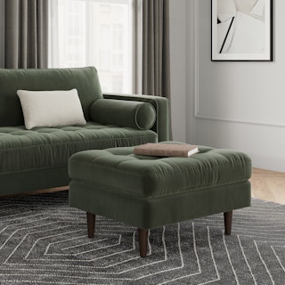 The Sven Ottoman is your new BFF. The velvet tufted topper is a golden pedestal for short, long, and four legs alike. Sturdy and adaptable, this ottoman is a great supporting character in your living space — while still possessing that undeniable star-quality.