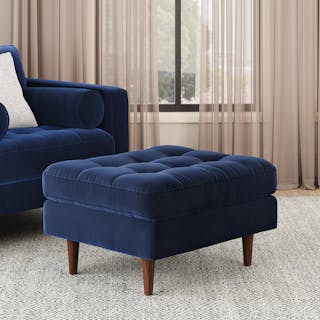 The Sven Ottoman is your new BFF. The velvet tufted topper is a golden pedestal for short, long, and four legs alike. Sturdy and adaptable, this ottoman is a great supporting character in your living space — while still possessing that undeniable star-quality.