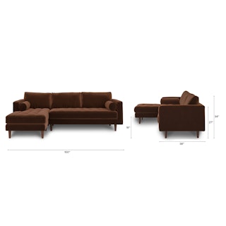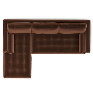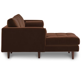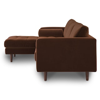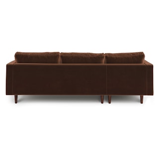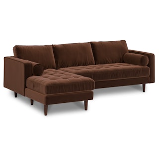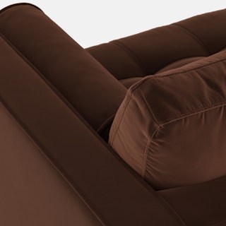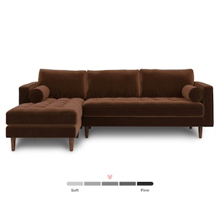 How does a person balance extravagance and practicality? With a velvet sectional sofa, obviously. With lux brushed velvet, loose back cushions and bolsters, and solid wood legs, there’s a reason this is our most popular sofa. A corner blocked wooden frame and slim walnut legs make for a sturdy and stylish movie-watching companion — pair with a smattering of tropical plants and coffee in a pretty mug.