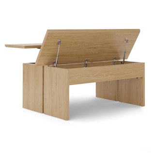 Make those work-from-the-sofa days a little easier with Karls multi-purpose tabletop. Last minute Zoom call? Effortlessly transform from a sleek coastal coffee table to a desk in seconds. Got some guests coming over and need to stash away the work gear? Karl's hinged tabletop offers ample storage, effortlessly transforming into a coffee table for drinks and snacks.