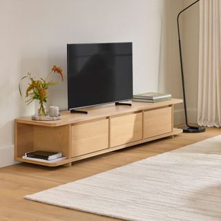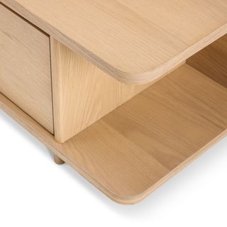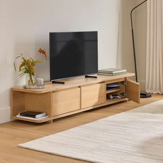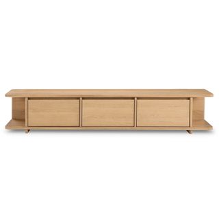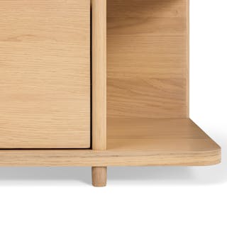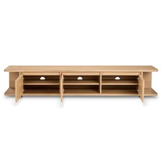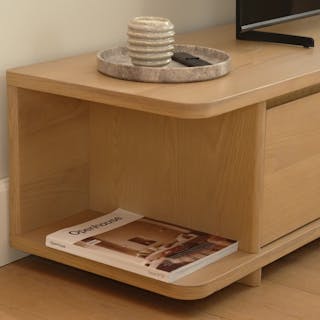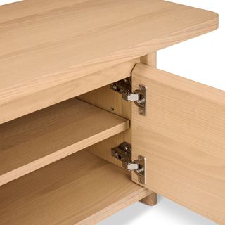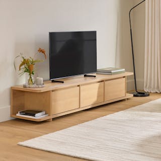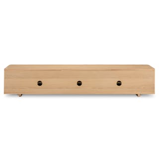 Nestled low beneath your television, this understated beauty may steal your attention. With its beveled edges and slim, elegant profile, Judith is a true show-stopper. Maintain your lounge's set design with Judith's discreet cable management, and keep that dusty old Blu-ray player behind solid wood doors.