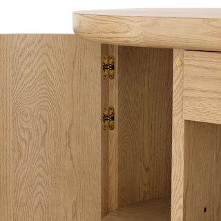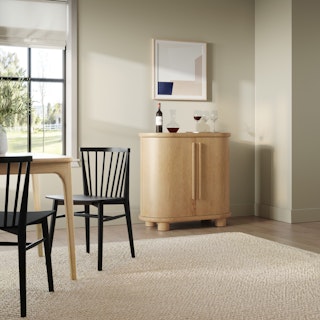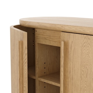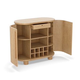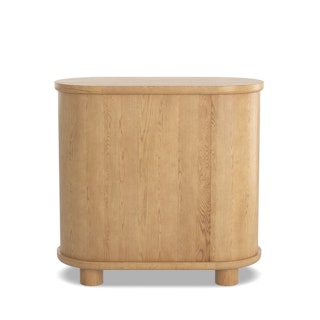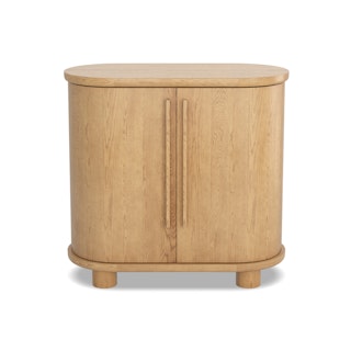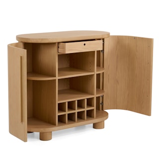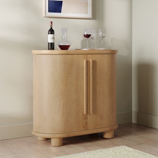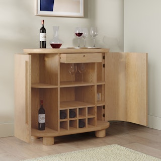 Want to be that friend who always has beverages on hand? Fancy glassware to show off? Well, say hello to Jens; this Scandinavian beauty features a dedicated and interchangeable rack for eight bottles of wine. Encased in a soft, rounded oak cabinet, Jens is the perfect addition to get the party started.