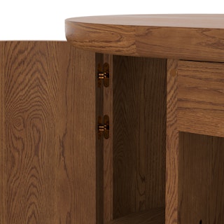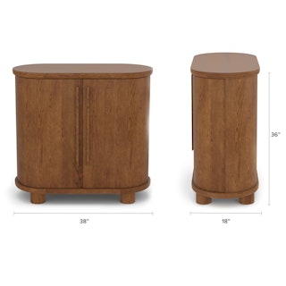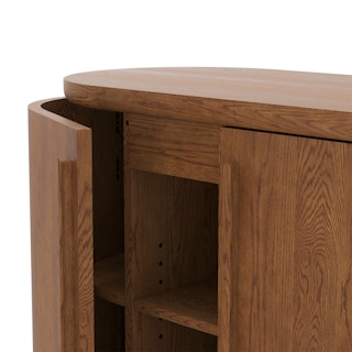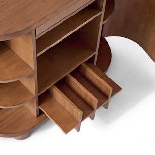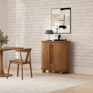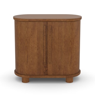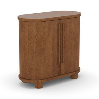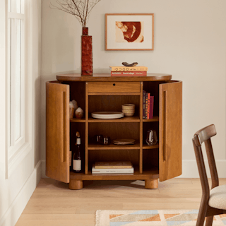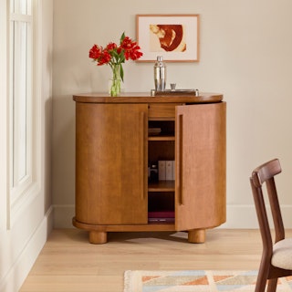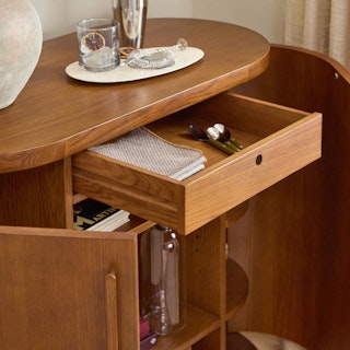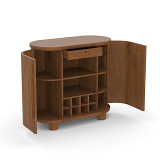 Want to be that friend who always has beverages on hand? Fancy glassware to show off? Well, say hello to Jens; this Scandinavian beauty features a dedicated and interchangeable rack for eight bottles of wine. Encased in a soft, rounded oak cabinet, Jens is the perfect addition to get the party started.