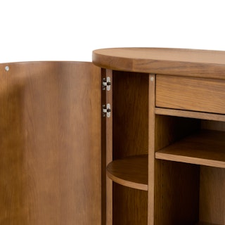 The Jens 38” Bar Cabinet in White Oak is a stylish and compact piece that adds a modern, Scandinavian touch to any room. Its clean design and warm wood finish m... More