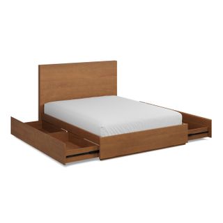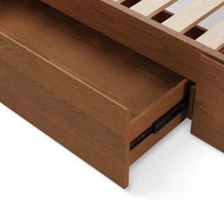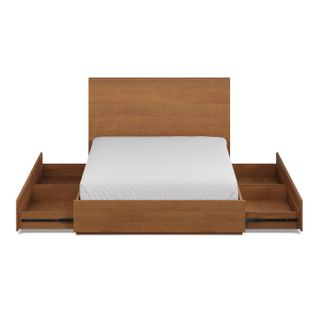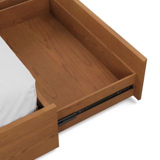 The strong, silent type. The Leif storage bed embodies the classic tropes we associate with Scandinavian good looks: tall, blond, sturdy, impeccable posture. But it's not all good looks and clean lines; it's also soft-spoken and sensitive to your (storage) needs. Featuring four soft-close drawers — two on either side, it boasts some serious storage capacity. Perfect for that extra set of sheets, or two or three...