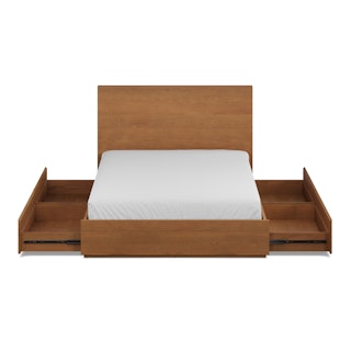 What minimalist dreams are made of. The Lenia Nightstand and the Leif storage bed embody the timeless traits of Scandinavian design: tall, blonde, sturdy, and with impeccable posture. Coming in at 6 drawers in total, this bundle boasts some serious storage capacity.