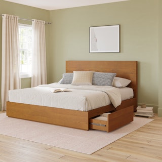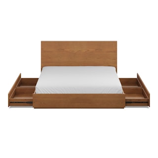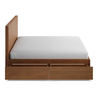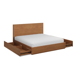 The strong, silent type. The Leif storage bed embodies the classic tropes we associate with Scandinavian good looks: tall, blond, sturdy, impeccable posture. But it's not all good looks and clean lines; it's also soft-spoken and sensitive to your (storage) needs. Featuring four soft-close drawers — two on either side, it boasts some serious storage capacity. Perfect for that extra set of sheets, or two or three...