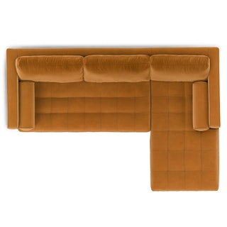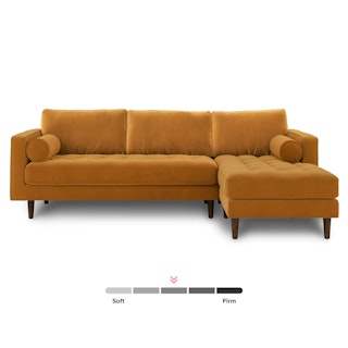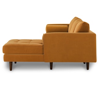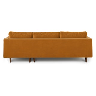 How does a person balance extravagance and practicality? With a velvet sectional sofa, obviously. With lux brushed velvet, loose back cushions and bolsters, and solid wood legs, there’s a reason this is our most popular sofa. A corner blocked wooden frame and slim walnut legs make for a sturdy and stylish movie-watching companion — pair with a smattering of tropical plants and coffee in a pretty mug.