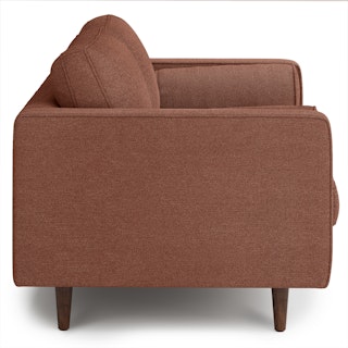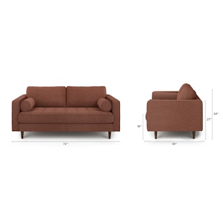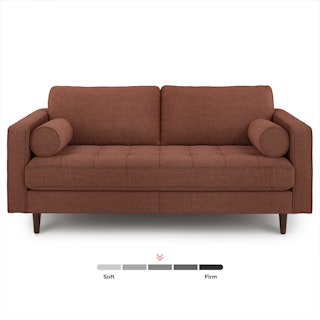 Our most popular sofa, reimagined for apartment living. This modern take on a mid-century classic features clean lines, a tufted benchseat, and luxuriously stuffed back cushions. Two matching round bolsters complete the look.
