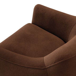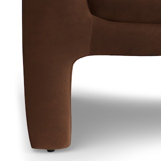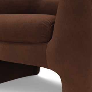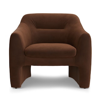 The classic club chair, reimagined with a post-modern flair. Eleanor wouldn't be caught dead in the bland designs of yesteryear, favoring bold silhouettes and highly texturized fabrics instead. Design details such as a tufted backrest and shapely arched legs exude a sense of self-possessed opulence. Eleanor is the choice chair of the house.