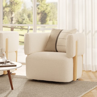Obsessed with this boucle swivel chair! ✨ The perfect mix of cozy and chic, with its soft textured fabric and warm wood accents. It adds just the right touch of... More