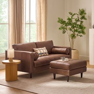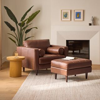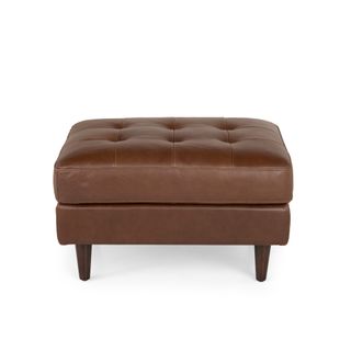 Sven 30" Tufted Leather Ottoman - Taos Brown