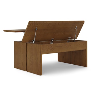 Make those work-from-the-sofa days a little easier with Karls multi-purpose tabletop. Last minute Zoom call? Effortlessly transform from a sleek coastal coffee table to a desk in seconds. Got some guests coming over and need to stash away the work gear? Karl's hinged tabletop offers ample storage, effortlessly transforming into a coffee table for drinks and snacks.