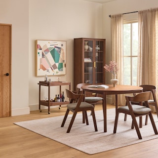 Inspired by the stylings of sixties dining rooms, the Meja is our take on timeless mid-century design. With a perfectly curved backrest seamlessly blending into its mini-elbow armrests, the Meja is here for you throughout all dinner-time conversations — exciting or not. Topped off with a plump upholstered seat, you'll never want to leave the dining table.