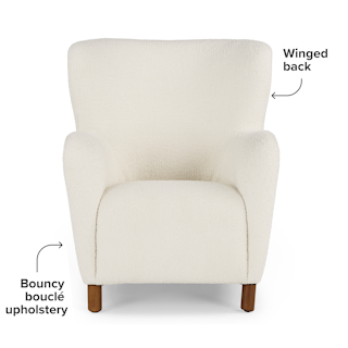 - Upholstered in a soft bouclé fabric