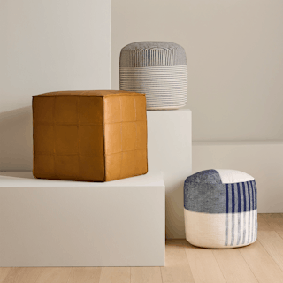 A patchwork of rich, golden-hued leather squares come together to create this buttery smooth pouf. Untreated for a natural look, our Taos Leather is soft to the touch and a perfect choice for the ultimate lounge spot. Pouf, ottoman, high-class bean bag — whatever you use Nash for, you'll do so in peak comfort.