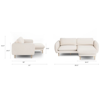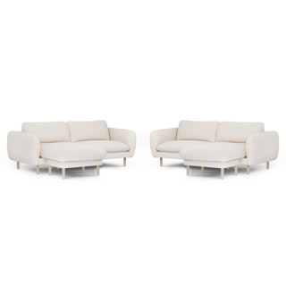 More beautiful than the sum of its parts. The Sanders reversible sofa comprises striking panels that make for a simple silhouette with interesting design details. Love experimenting with new living room layouts? Customize your chaise to the left or right by shifting the ottoman and chaise cushion. Loose base and back cushions make this sofa easy to care for, and also great for building forts. And who doesn’t want a stylish, versatile, Scandi-inspired sofa that transforms into a beautiful fort?