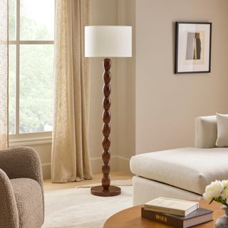 Tall, slender, and lean. The Sloane is timeless, effortlessly adding class and style to any room. Sitting atop its wood-turned, beaded frame, the Sloane casts peak mood lighting from its natural linen shade, creating a soothing, pleasant ambiance.