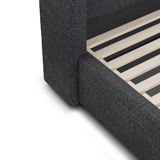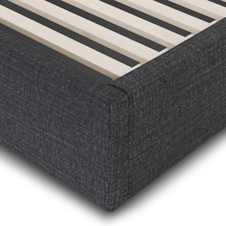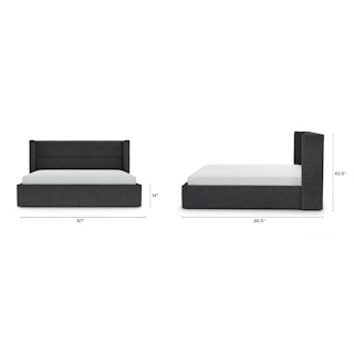 The CEO of dreamland. This generous wing-backed headboard has some pretty high expectations of your REM cycle. Upholstered with a linen-blend and padded with dense foam, the Calabri bed also features a generous upholstered base. Talk about an elevated aesthetic.