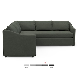 A minimal look with maximum impact… and maximum seating area. The Landry marries laid back comfort with elegant details to produce a sectional that is as comfortable hosting movie night as it is a cocktail hour. Sloping sleigh-style arms and clean straight lines make it simple to pair this sectional with many different styles. Try it with a warm white backdrop, against a wildly patterned rug, or draped with your favorite blanket. The Landry is easygoing style at its best.