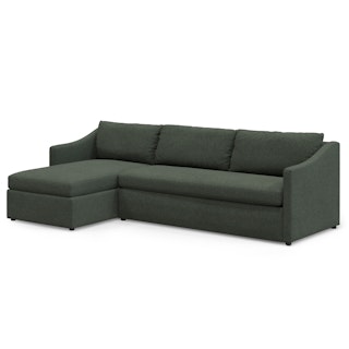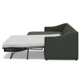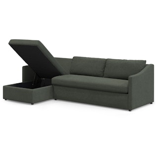 A minimal look with maximum impact... and maximum function. The Landry Sofa Bed marries laid back comfort with elegant details to produce a sofa that is as comfortable hosting movie night as it is your in-laws. Sloping sleigh-style arms and clean, straight lines make it simple to pair this sofa with many styles. With a spacious chest hidden below its chaise seat, and pull-out memory foam mattress, this sofa bed is compact, functional, and comfortable. Almost too comfortable.