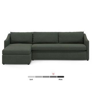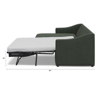 A minimal look with maximum impact... and maximum function. The Landry Sofa Bed marries laid back comfort with elegant details to produce a sofa that is as comfortable hosting movie night as it is your in-laws. Sloping sleigh-style arms and clean, straight lines make it simple to pair this sofa with many styles. With a spacious chest hidden below its chaise seat, and pull-out memory foam mattress, this sofa bed is compact, functional, and comfortable. Almost too comfortable.