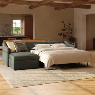 Landry 109" Left Storage Sleeper Sectional - Green Wool Bouclé