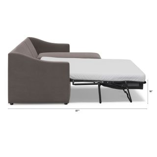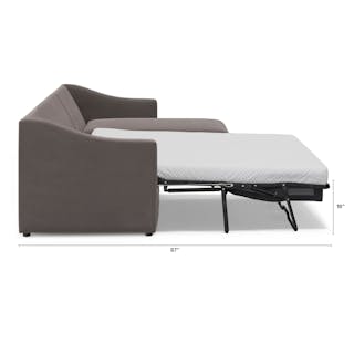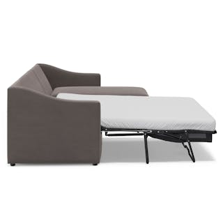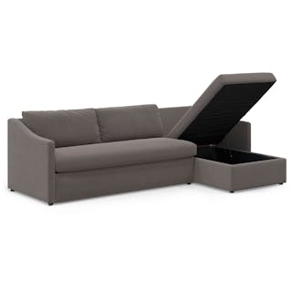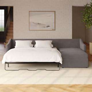 A minimal look with maximum impact... and maximum function. The Landry Sofa Bed marries laid back comfort with elegant details to produce a sofa that is as comfortable hosting movie night as it is your in-laws. Sloping sleigh-style arms and clean, straight lines make it simple to pair this sofa with many styles. With a spacious chest hidden below its chaise seat, and pull-out memory foam mattress, this sofa bed is compact, functional, and comfortable. Almost too comfortable.