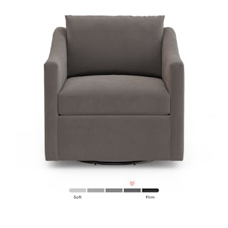 A minimal look with maximum impact... The Landry swivel chair marries laid-back comfort with practical swivel functionality. The result? A lounge chair that's as comfortable hosting movie night as it is cocktail hour. With its sloping sleigh-style arms and clean and straight lines, set atop a 360-degree swivel base, it is a versatile piece that pairs with various interior design styles. Whether against a warm white backdrop, a boldly patterned rug, or draped with your favorite blanket, the Landry adapts to your unique style, adding a touch of easygoing elegance to any setting.