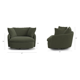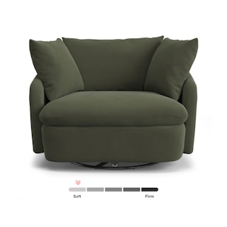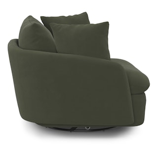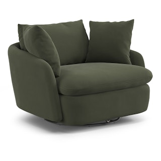 Cloud kingdom, population: you. The Leigh Grand swivel chair is the bigger brother, boasting an extra 14" in seat depth alone — nap central, we know. With thoughtful details that make it the perfect place to put your feet up and read/watch a show/stare into the middle distance. Upholstered with stain-resistant Hale fabric, the Leigh is here to help you rest easy.