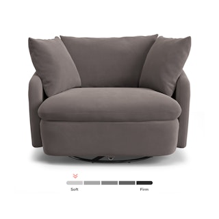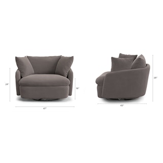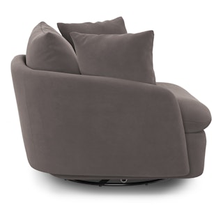 Cloud kingdom, population: you. The Leigh Grand swivel chair is the bigger brother, boasting an extra 14" in seat depth alone — nap central, we know. With thoughtful details that make it the perfect place to put your feet up and read/watch a show/stare into the middle distance. Upholstered with stain-resistant Hale fabric, the Leigh is here to help you rest easy.