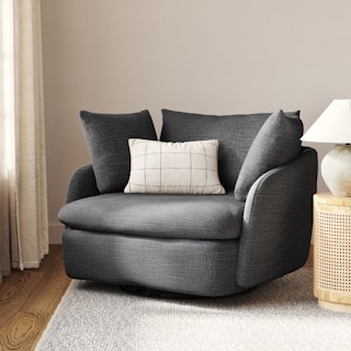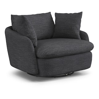 Cloud kingdom, population: you. The Leigh Grand swivel chair is the bigger brother, boasting an extra 14" in seat depth alone — nap central, we know. With thoughtful details that make it the perfect place to put your feet up and read/watch a show/stare into the middle distance. Upholstered with stain-resistant Napa fabric, the Leigh is here to help you rest easy.
