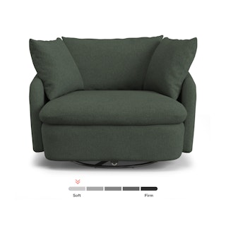 Cloud kingdom, population: you. The Leigh Grand swivel chair is the bigger brother, boasting an extra 14" in seat depth alone — nap central, we know. With thoughtful details that make it the perfect place to put your feet up and read/watch a show/stare into the middle distance. Upholstered with our ever-so-soft bouclé fabric, the Leigh is here to help you rest easy.