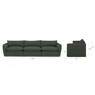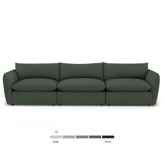 Cloud kingdom, population: you. The Leigh sofa is our comfiest sofa ever, with thoughtful details that make it the perfect place to put your feet up and nap/read/watch a show/snuggle/stare into the middle distance. Three seat styles mean you can build the perfect spot to crash, and gently angled armrests make it easy to relax without immediately falling asleep. Upholstered with our ever-so-soft bouclé fabric, the Leigh is here to help you to rest easy.