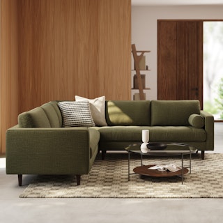 The Sven Corner Sectional is everything you love about the classic Sven, but with double the Sven. The tufted bench seat supports super-long Netflix® marathons, and overstuffed cushions and round bolsters have your back no matter what position you chill in. Upholstered with Article's Napa fabric, a textile treated with a stain-repellant C0 finish, offering exceptional protection to your sofa while being free of gross forever-chemicals