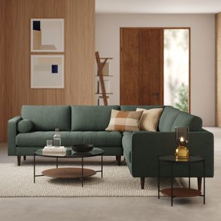 Sven 107" Tufted Corner Sectional - Green Wool Bouclé