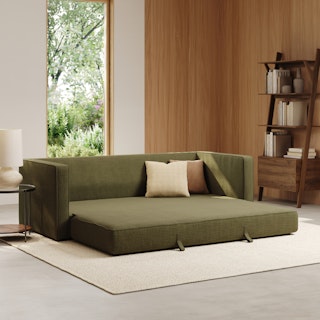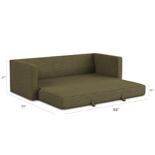 Ever looked at our best-selling Sven and thought “Huh, this thing looks so comfy, I wish they made a Sofa Bed version”. Well, dream no longer. The Sven Sofa Bed is here to make all your slumber-themed dreams come true. The Sven Sofa Bed is Indistinguishable from the rest of the collection, with its signature tufted bench seat, overstuffed cushions, and round bolsters still present. But now, simply grab the two pulls on the backside of the seat cushion and unfold the mattress for a seamless transition—Classy timeless couch to snoozeland in seconds, what's not to love?
