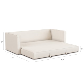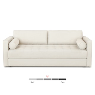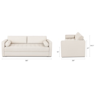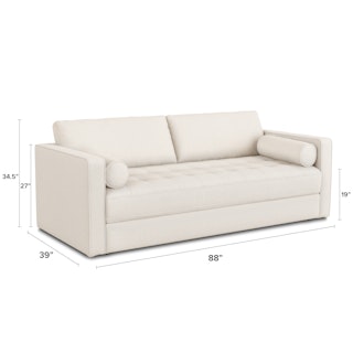 Ever looked at our best-selling Sven and thought “Huh, this thing looks so comfy, I wish they made a Sofa Bed version”. Well, dream no longer. The Sven Sofa Bed is here to make all your slumber-themed dreams come true. The Sven Sofa Bed is Indistinguishable from the rest of the collection, with its signature tufted bench seat, overstuffed cushions, and round bolsters still present. But now, simply grab the two pulls on the backside of the seat cushion and unfold the mattress for a seamless transition—Classy timeless couch to snoozeland in seconds, what's not to love?