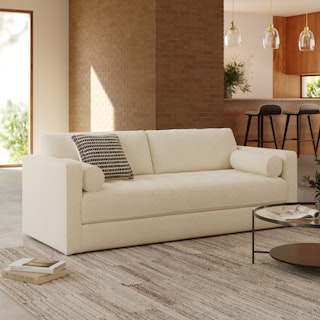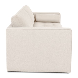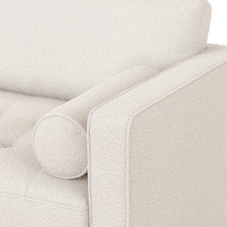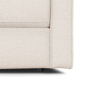 - Upholstered in a soft, non-absorptive bouclé fabric. Bouclé is an excellent choice for those who want an easy-to-care-for, style-forward sofa