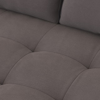 This gray tufted sofa serves cozy library vibes. This open-weave gray tufted sofa features loose back cushions and bolsters, a supportive bench seat, and classic good looks that will compliment your living space for years. Curl up with your favorite long read. Might we suggest “The Odyssey”?