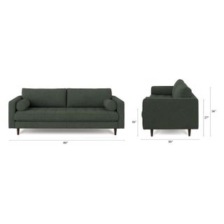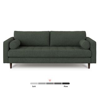 There’s a reason this is our most popular sofa. This modern take on a mid-century classic features crisp lines, a tufted benchseat, and two luxuriously stuffed back cushions. Two matching round bolsters complete the look.