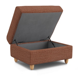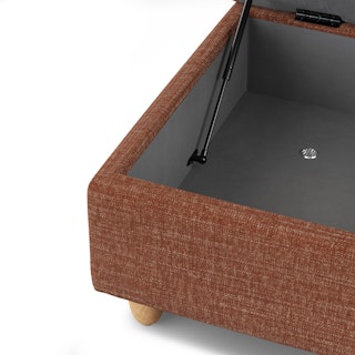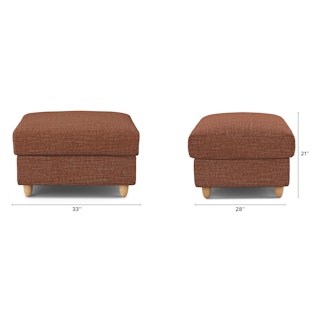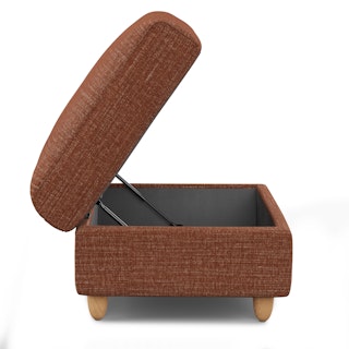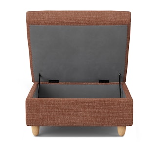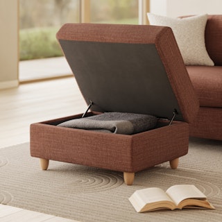 Ottoman? Actually, it's a treasure chest. With its low-profile curvaceous shape and ridiculously cushy cushion, it's ready to stow away your throw blankets, pillows, or that bag of chips you don't want to share.