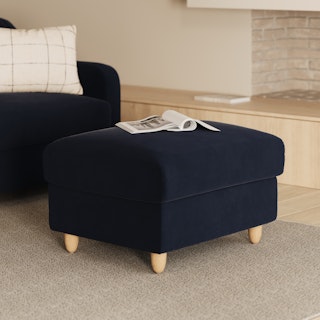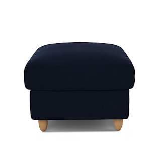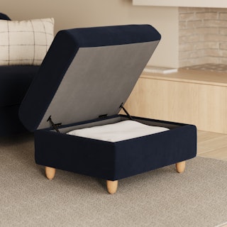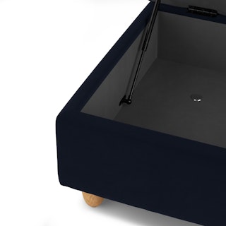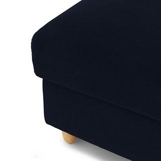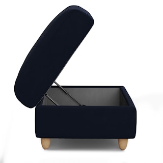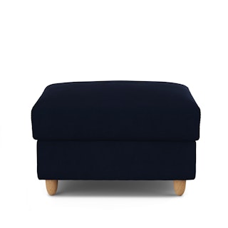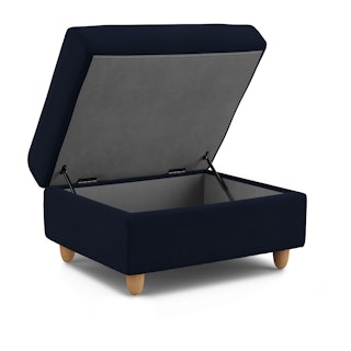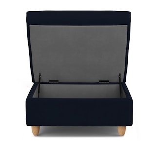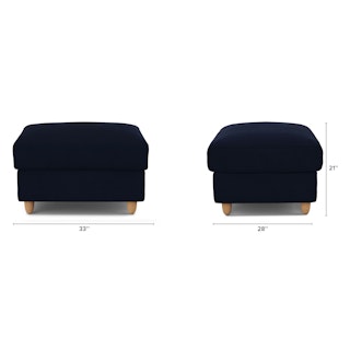 Ottoman? Actually, it's a treasure chest. With its low-profile curvaceous shape and ridiculously cushy cushion, it's ready to stow away your throw blankets, pillows, or that bag of chips you don't want to share.