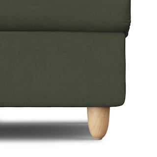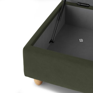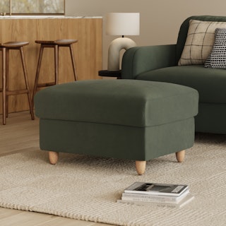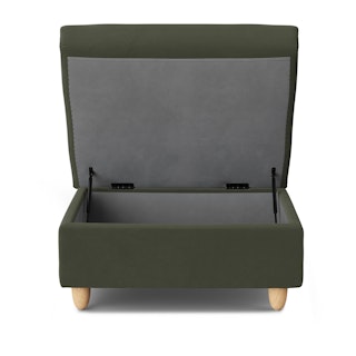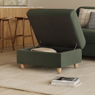 Ottoman? Actually, it's a treasure chest. With its low-profile curvaceous shape and ridiculously cushy cushion, it's ready to stow away your throw blankets, pillows, or that bag of chips you don't want to share.