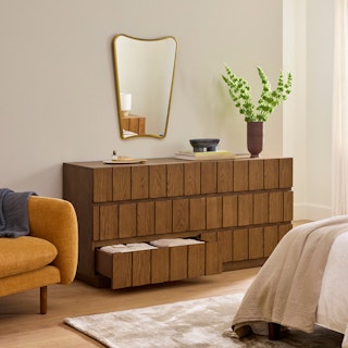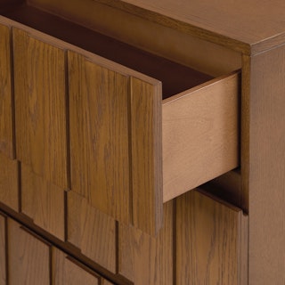 Marko knows it's handsome: it commands attention and will be the bold centerpiece your bedroom craves. The intricately carved solid wood drawer fronts, ample storage, soft-close drawers, and softened edges make up a functional, sophisticated, and handsome piece of furniture.