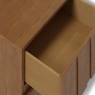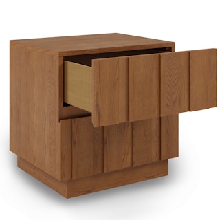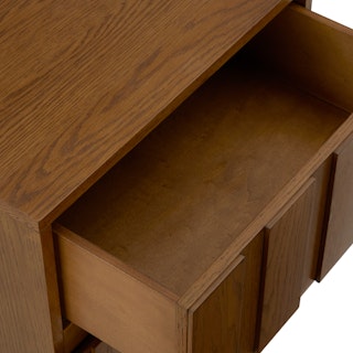 Marko knows it's handsome: it commands attention and will be the bold nightstand your bedroom craves. The intricately carved solid wood drawer fronts, ample storage, soft-close drawers, and softened edges make up a functional, sophisticated, and handsome piece of furniture.