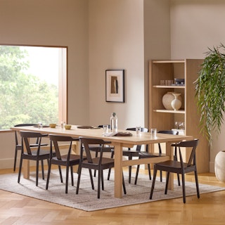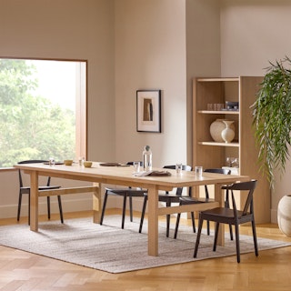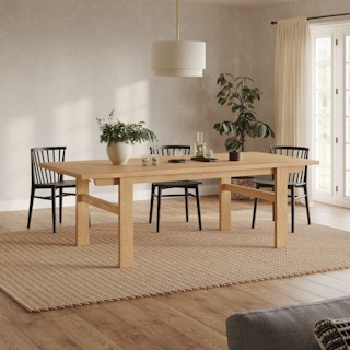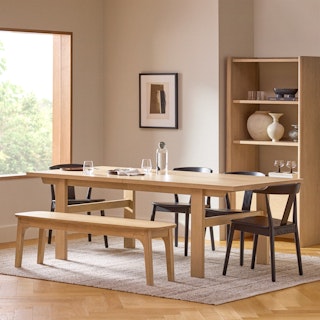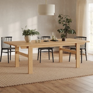 The traditional trestle-style base dining table minus "traditional values." A sturdy time-tested design, Gina is updated for the modern day dinner party needs with an extendable leaf that drops in when you need. Comfortable for up to 8 guests, you can have the whole family over — or not!