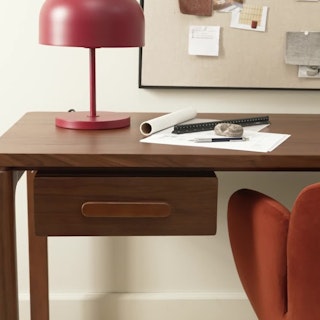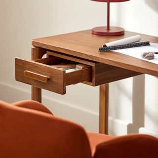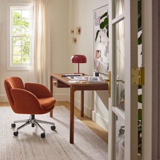 Classic elements, modern needs... that's the Mid-Century Office Bundle. The Gerven's buttery soft leather and sculpted metal armrests paired with Kacey's sturdy solid walnut frame and floating desktop design support your best work. The modular design lets you mount the Kacey desks drawer on either side of the work station. Go on, knock those KPIs out of the park.